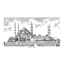 Bu zarif gravür, İstanbul'un simgelerinden biri olan Sultanahmet Camii'ni detaylı bir şekilde yansıtmaktadır. Sekizgen planlı yapının zarif kubbesi, kesme taştan inşa edilmiş duvarları ve pencere düzenlemeleriyle dikkat çeker. İç mekandaki celi sülüs hat sanatıyla yazılmış ayetler ve Esma-ül Hüsna isimleri, gravürde özenle işlenmiştir. Eser, hem mimari hem de sanatsal açıdan Osmanlı'nın son dönem padişahlarının anısını yaşatan önemli bir yapıyı görsel olarak sunmaktadır.